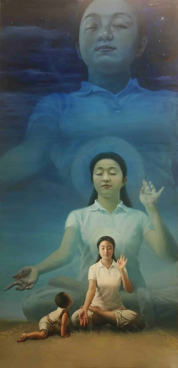 Това произведение на изкуството показва истинското състояние на тялото на практикуваща Фалун Дафа в нейното самоусъвършенстване. То изобразява преживяната от нея изключителна чистота по време на медитация. Малкото дете с чисто сърце лесно вижда истината в другите измерения чрез своето небесно око.